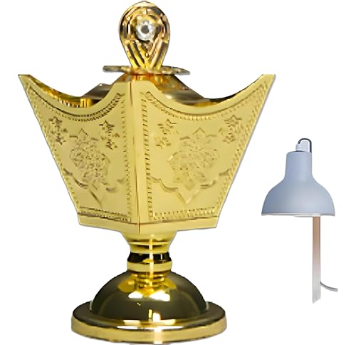 Generic - مبخرة ديكورية - مصنوعة من الحديد المطلي بصبغة ذهبية فاخرة، تتميز بلمسة نهائية ذهبية أنيقة، حامل البخور على الطراز الشرق أوسطي مثالي للديكور المنزلي بأبعاد 14 × 8.
