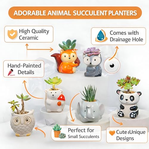 - Compact, cute animal-shaped pots sized at 3.1 by 2.7 by 2.9 inches, making them perfect for windowsills, desks, kitchens, and bedrooms while adding a playful character to any decor.