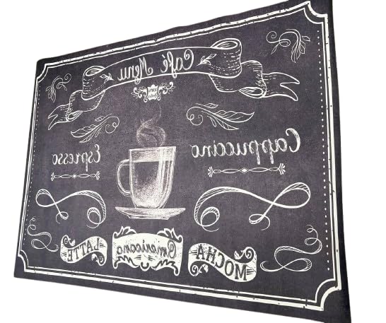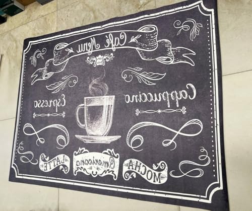 Generic - Decorative Kitchen Floor Mat, Coffee Theme Chalkboard Design, 304.8 x 228.6 cm, 4mm Thick Rubber