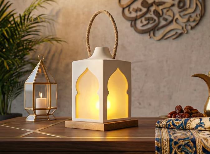 - Traditional Arch Design: Features elegant Islamic-inspired arch cutouts on white panels that beautifully diffuse warm LED light, creating an authentic spiritual ambiance perfect for Ramadan and other celebrations
