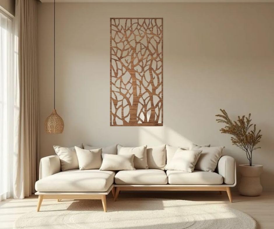 - MATERIAL: Crafted from high-quality MDF wood, featuring an intricate tree branch design with precise laser-cut patterns