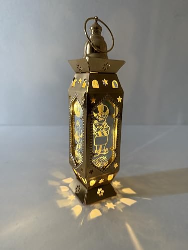 Generic - Decorative Metal Ramadan Lantern, LED Colour Changing Light, Gold Finish, Moon and Stars Design (Art Medium)
