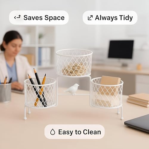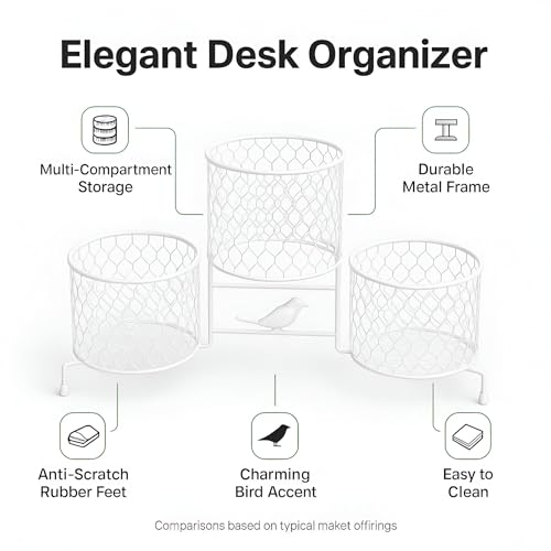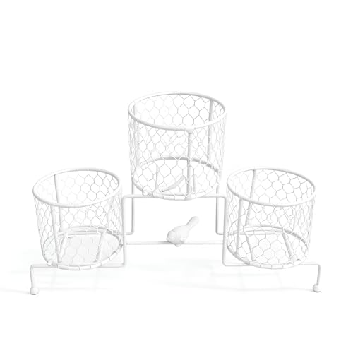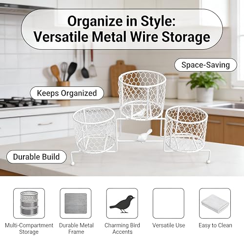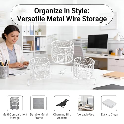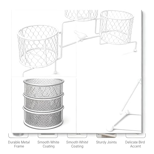 - يجمع التصميم الشبكي السلكي الأبيض الأنيق مع زخارف الطيور المزخرفة بين العملية والجاذبية الجمالية لأغراض الديكور المنزلي.