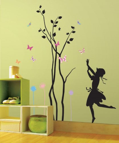 Generic - Decorative multicolored sticker -Young girl playing near a tree with butterflies flying around (60x100cm)