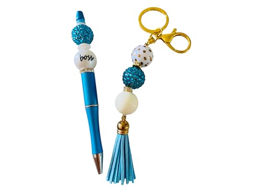 - مجموعة كاملة: تتضمن قلم مطرز مع حلقة مفاتيح وزخارف زهور وشرابة وردية متناسقة بتصميم متماسك