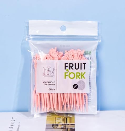 Generic - شوك فاكهة بلاستيكية مزخرفة، زهري، 50 قطعة، طول 8.5 سم، حجم صغير للحلويات والوجبات الخفيفة