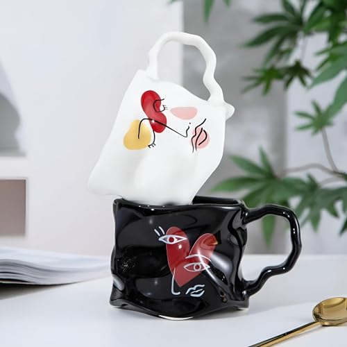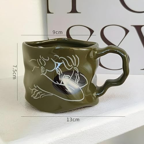Generic - كوب بورسلين مزخرف - كوب حراري مصنوع يدويًا، سعة 300 مل، ثلاثة الوان نابضة بالحياة، مثالي لتقديم الهدايا، الاستخدام اليومي، او المناسبات الخاصة، مصنوع بعناية (زيتي)