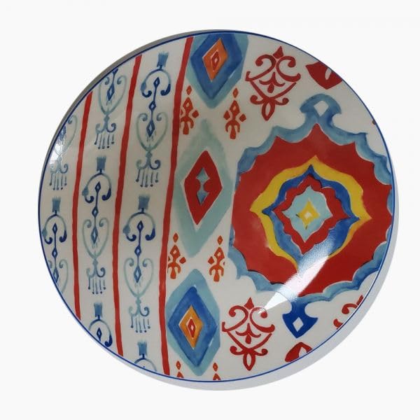 - تصميم فاخر: مجموعة من 6 أطباق عشاء من البورسلين تتميز بأنماط بوهيمية نابضة بالحياة مع ألماس هندسي وتصميمات مزخرفة في مخطط متعدد الألوان