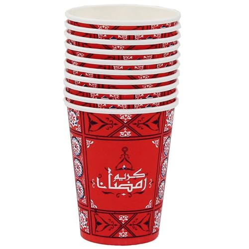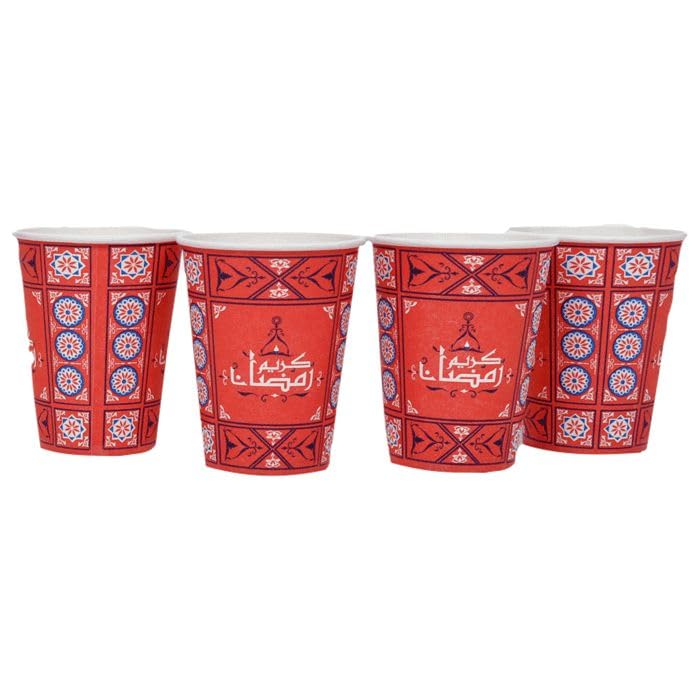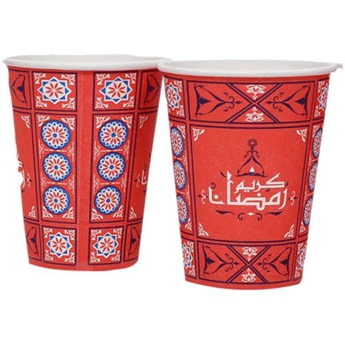Generic - أكواب ورقية منتجات لديكور شهر رمضان الكريم، بنقشة إسلامية باللونين أحمر وأزرق، عبوة من 50 قطعة