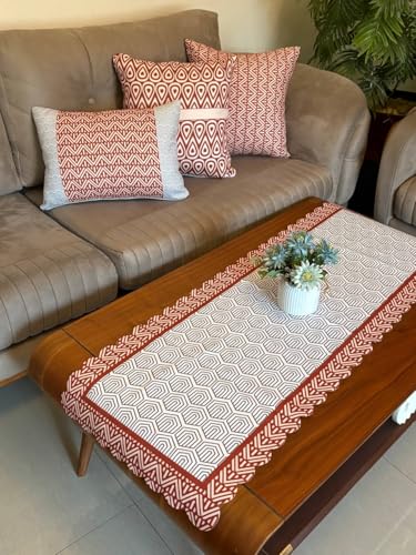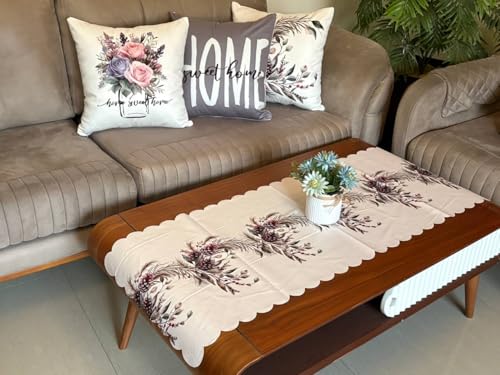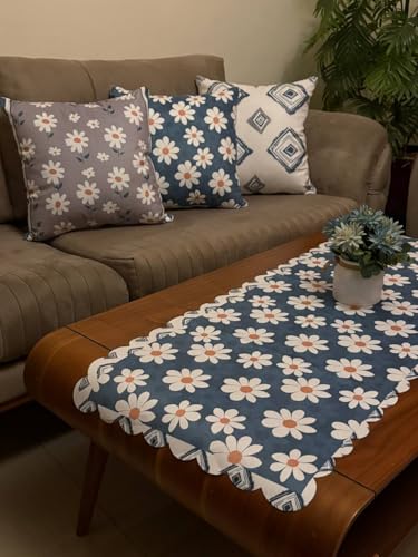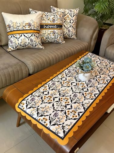 Generic - Decorative Set of 4 | Table Runner (120x45cm) + 3 Cushion Covers (45x45cm) | Premium Turkish Velvet Fabric | Multiple Colors & Designs