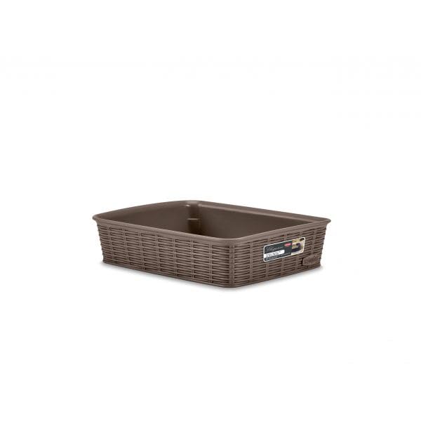 Generic - Decorative Storage Basket with Woven Pattern, Brown Plastic, Rectangular Shape