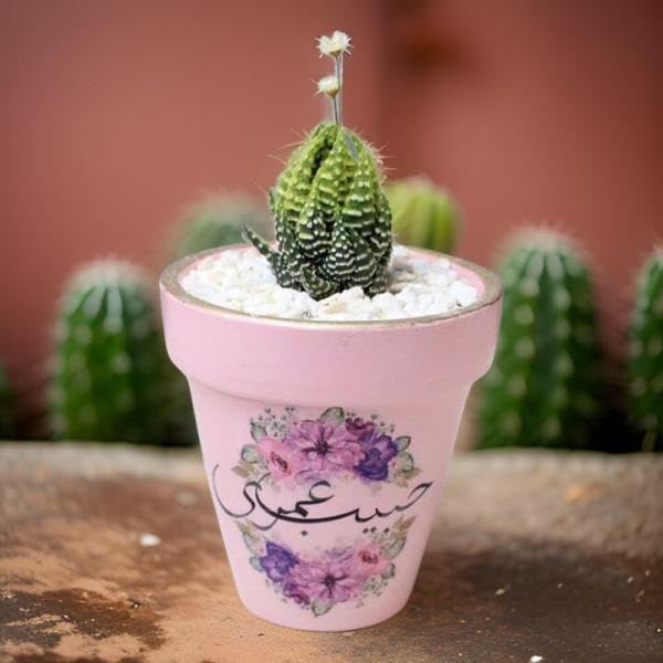 - DESIGN FEATURES: Beautiful pink pottery planter pot adorned with elegant floral patterns in purple and pink hues, perfect for small succulents