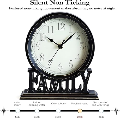 Generic - Decorative Table Clock - Vintage Family Style with Silent Operation, Ideal for Living Room, Bedroom, Shelves, Fireplace, Rustic Home Decor