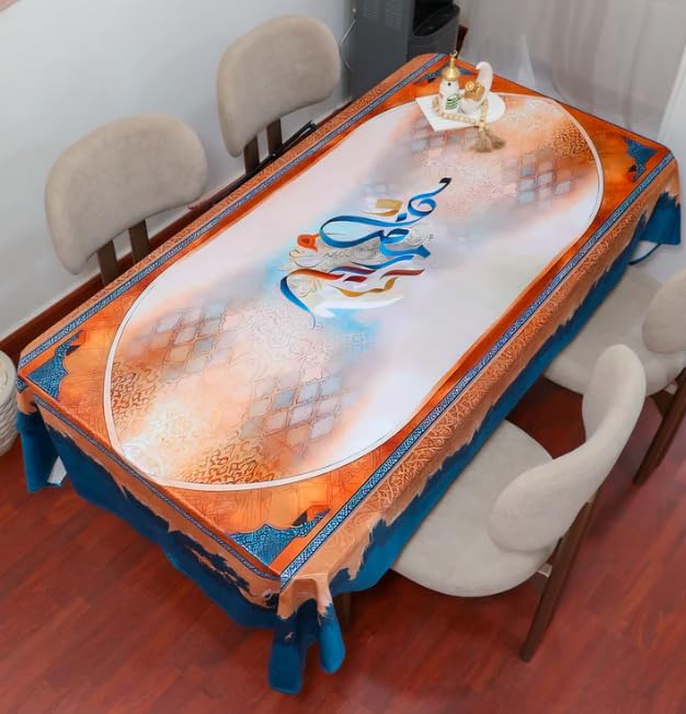 Generic - Decorative Tablecloth with Arabic Calligraphy, Velvety Soft Fabric, Orange and Blue, Multiple Sizes Available, 90x90 to 140x280 cm (140 * 200)