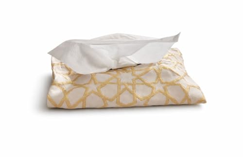 • Elegant Design: Decorative tissue box cover featuring a sophisticated gold geometric pattern on white fabric that adds a touch of luxury to any room décor
