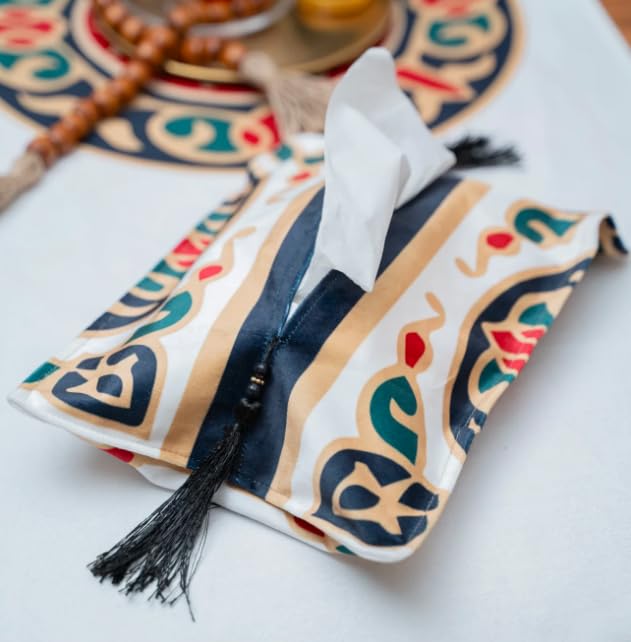 - تفاصيل شرابة أنيقة: تأتي مع شرابة مزخرفة سوداء مرفقة تضيف لمسة نهائية راقية إلى غطاء المناديل