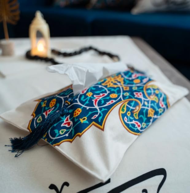 Generic - غطاء مناديل مزخرف، قماش مخملي ناعم، تصميم نمط ازرق مزخرف