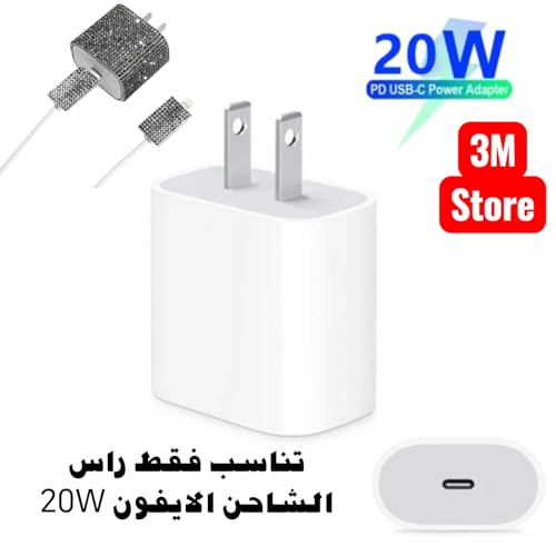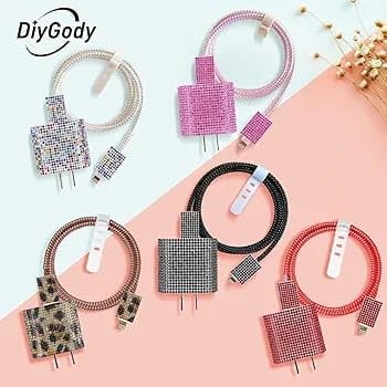 - ✨ Elegant Rhinestone Style for Women: تصميم أنيق لامع يناسب السيدات ويضيف شكل راقي للشاحن 🔌 Compatible with iPhone 20W Type-C Chargers: مناسب لشواحن آيفون 20 وات USB-C