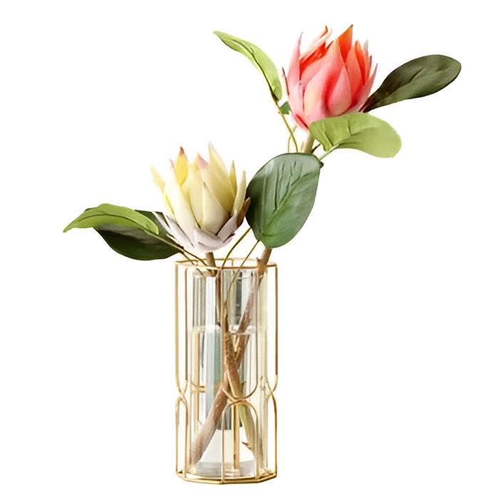 Generic - مزهرية مزخرفة - وعاء نباتات زجاجي انيق بتصميم عصري انيق، دعامة معدنية متينة، جزء داخلي من الكريستال الشفاف، مثالي لترتيبات الزهور ولمسات ديكور المنزل