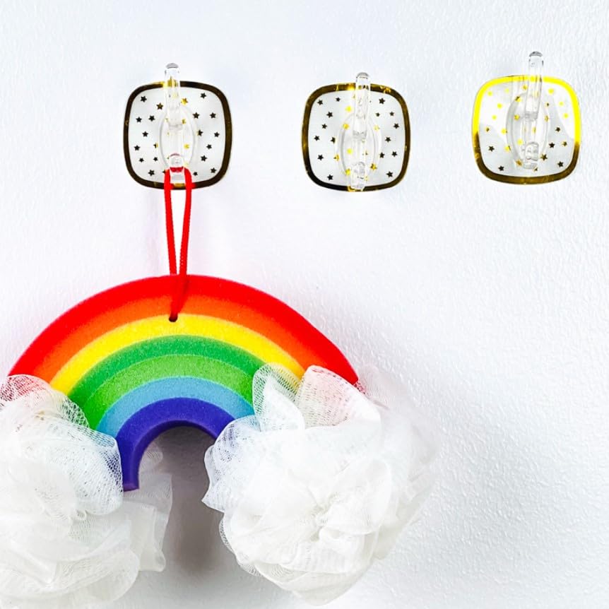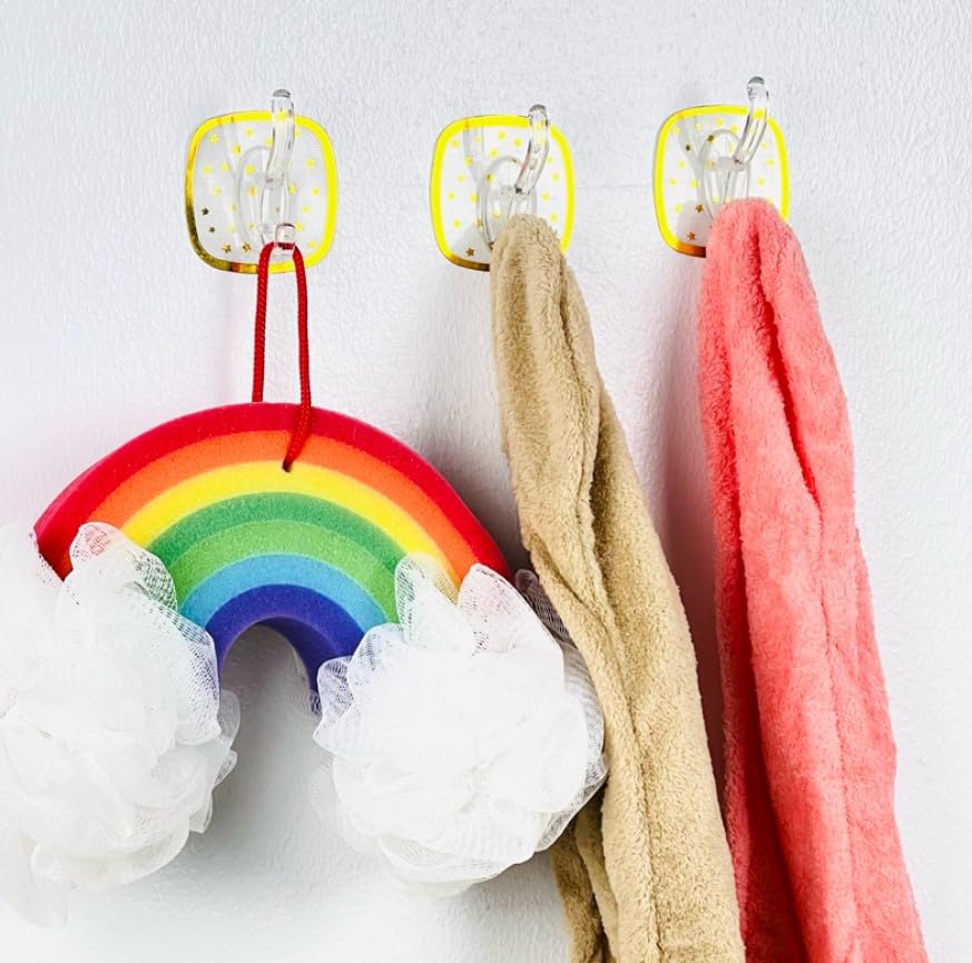- VERSATILE DESIGN: Set of 3 decorative wall hooks featuring charming star pattern borders and transparent hooks, perfect for bathrooms, kitchens, and entryways