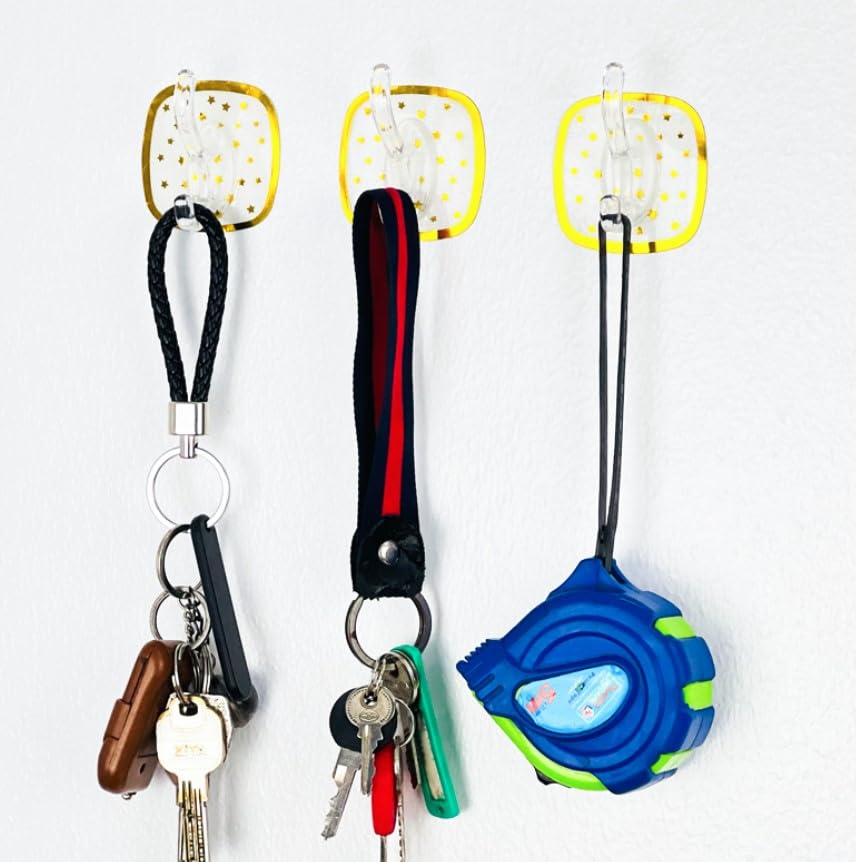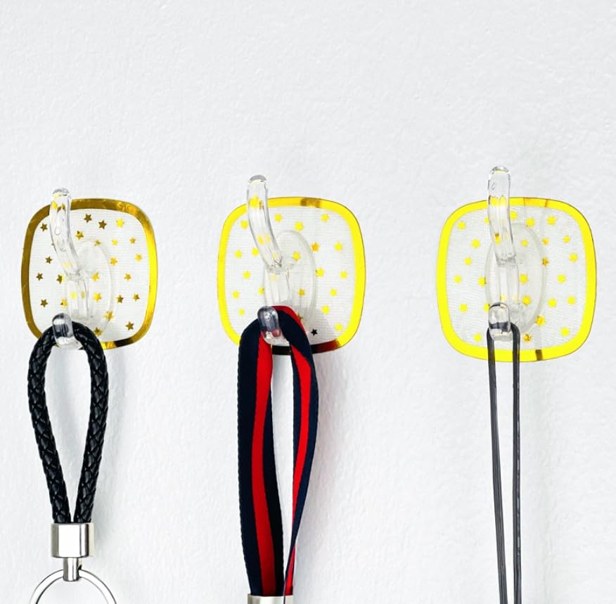 - DURABLE CONSTRUCTION: Made with high-quality transparent plastic hooks and decorative square backplates with metallic star pattern accents