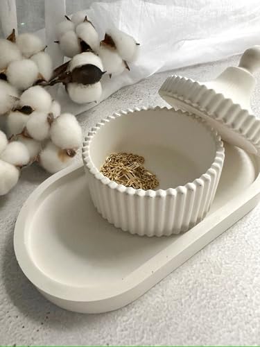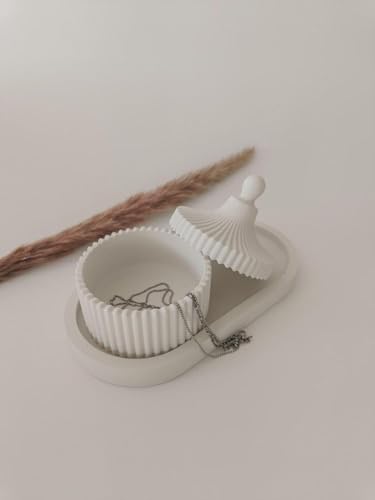- ELEGANT DESIGN: White Gypsum jewellery box with pleated texture and decorative lid, perfect for modern and boho-inspired home décor