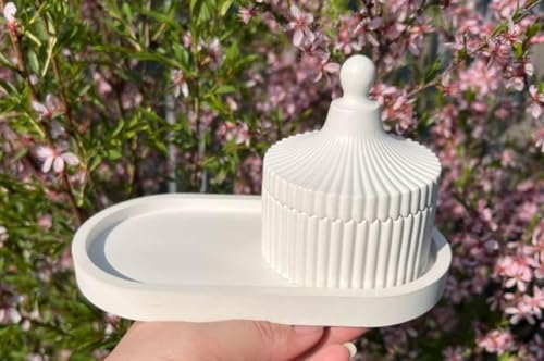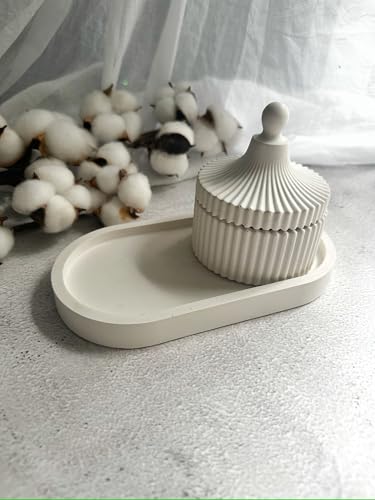 Generic - Decorative White Gypsum Jewelry Box with Lid, Oval Tray, Modern Boho Storage Container