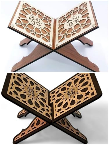 - هيكل خشبي صلب فاخر 8 ملم: مصنوع من خشب عالي الجودة 8 ملم لمتانة فائقة واستخدام طويل الأمد. يضمن الهيكل الصلب دعمًا ثابتًا للقرآن أو الكتب الأخرى، مما يجعله مناسبًا للقراءة اليومية وجلسات الصلاة والعرض الزخرفي في أي منزل إسلامي أو ركن صلاة.