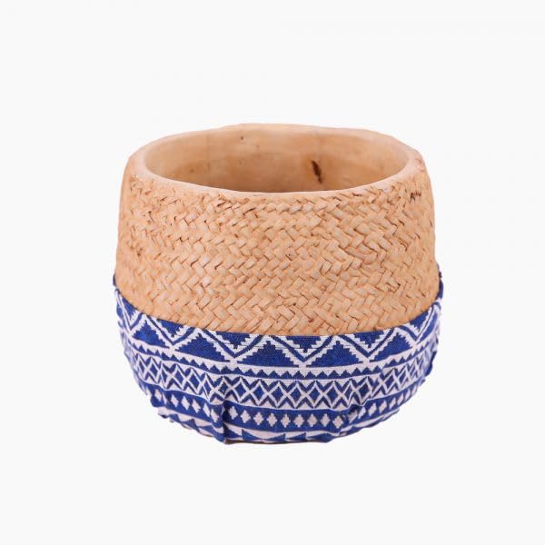 - HANDCRAFTED DESIGN: Beautiful combination of natural rattan weave top portion and blue tribal pattern bottom portion creates an eye-catching decorative bowl