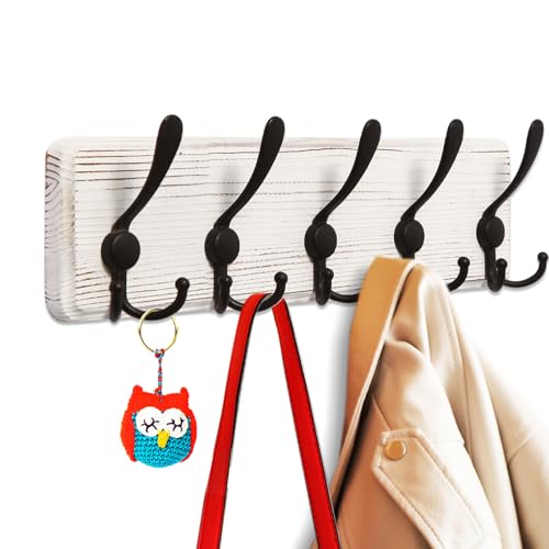 DecorDudz - حامل معاطف خشبي يثبت على الحائط مقاس 20.8 انش من ديكور دودز - 6 خطافات ثلاثية، رف معطف للمدخل وغرفة المعيشة والحمام وغرفة النوم والمطبخ ومنظم القبعات (ابيض قديم)