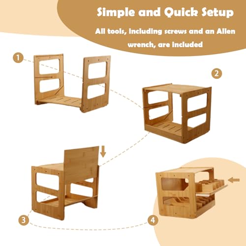- Simple Assembly: Set up your can organizer in just 15 minutes with our user-friendly design, with clear instructions and minimal tools required.(Tool included) Keep your kitchen efficiently organized with our Stackable Bamboo Can and Pet Food Organizer Rack.