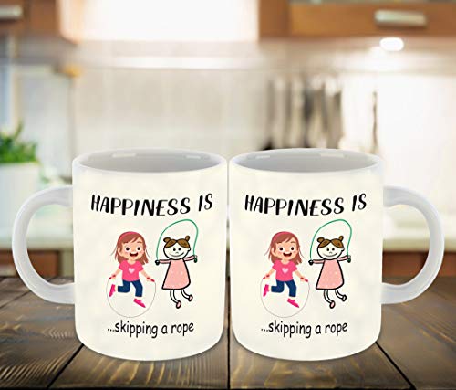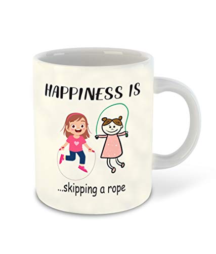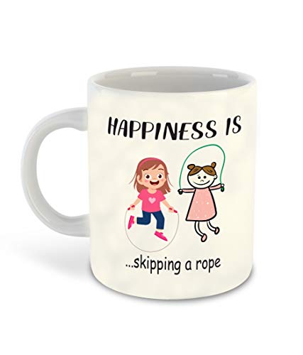 DecorVecor - Happiness is Skipping a Rope Printed White Inner Colour Ceramic Coffee Mug | Drink | Milk Cup - Best Gift | Happiness, (Design 12)