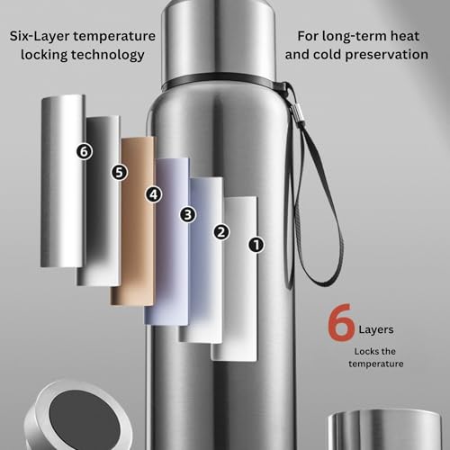 - هيكل مصنوع من فولاذ مقاوم للصدأ عالي الجودة: ترمس حراري مصنوعة من الفولاذ المقاوم للصدأ المتين بدرجة 304 18/8 بلمسة نهائية فضية أنيقة، مما يوفر حلًا مقاومًا للصدأ وخالي من البيسفينول أ وصديق للبيئة للترطيب اليومي.