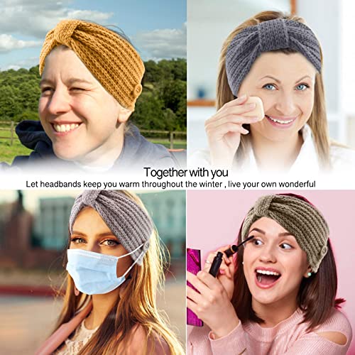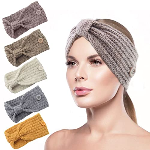 Dee Banna - 5Pcs Knitted Headband Knitted Headwraps Knotted Button Headband Crochet Turban Headbands Elastic Braided Head Wrap for for Women Wash Face Makeup Workout GYM Yoga Running