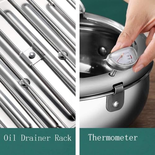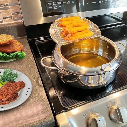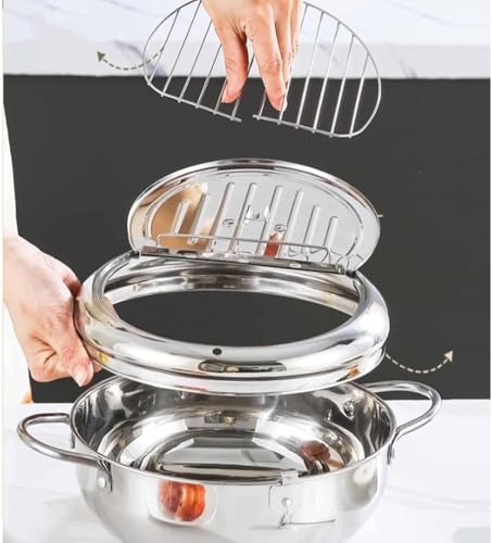 Generic - وعاء مقلاة استانلس ستيل عميق وسميك مع شبكة تصفية الزيت لتحمير البطاطس والدجاج والخضار بطريقة سهلة وسريعة مع الحفاظ على القرمشة