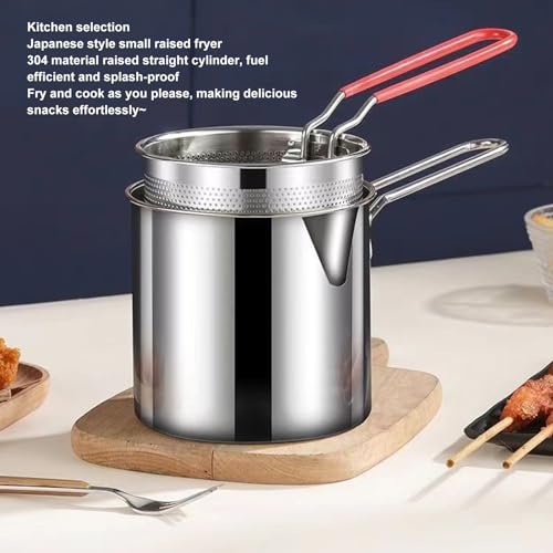 TUWEI - Deep Fryer Pot, 304 Stainless Steel Deep Fry Pot with Strainer Basket and Handle, Japanese Tempura Fryer Deep Fryers Frying Pot for Frying Fish, Shrimp, Chicken and Fries