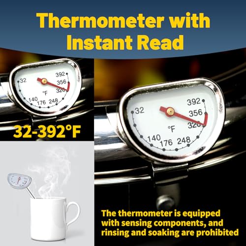 - Easy to clean: The oil filter cover, pot cover, and pot body can be quickly separated. After disassembly, soak for 15 minutes, and the food residue can be washed away immediately. The thermometer cannot be washed with water. After natural cooling, wipe it dry with a cloth
