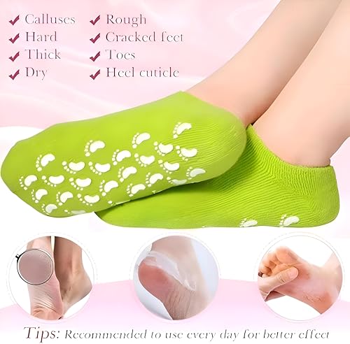 - توفر هذه الجوارب الفاخرة المليئة بالجل ترطيبًا عميقًا وإصلاحًا للأقدام الجافة والمتشققة باستخدام مزيج فاخر من فيتامين E وزيت الجوجوبا وزيت الزيتون والخلاصات النباتية الطبيعية، مما يعيد النعومة الطبيعية والمرونة والتوهج الصحي للقدم بالكامل - وليس فقط الكعب العالي.