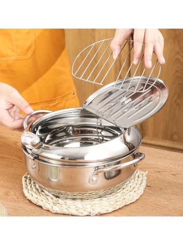 generic - مقلاة عميقة من الستانلس ستيل مع شبكة تصريف ومقياس حرارة للتحكم الدقيق في درجة الحرارة.