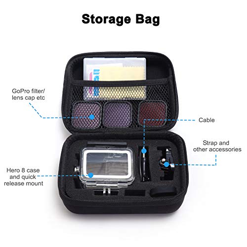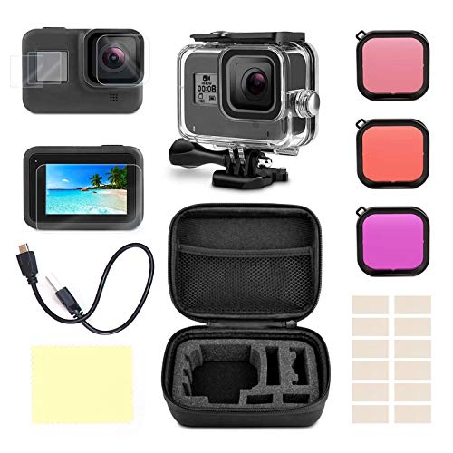 DeepRoar - DeepRoar Accessories Kit for GoPro Hero 8 with Shockproof Small Case + Waterproof Case + Tempered Glass Screen Protector + Lens Filters + Anti-Fog Inserts Bundle (Black)