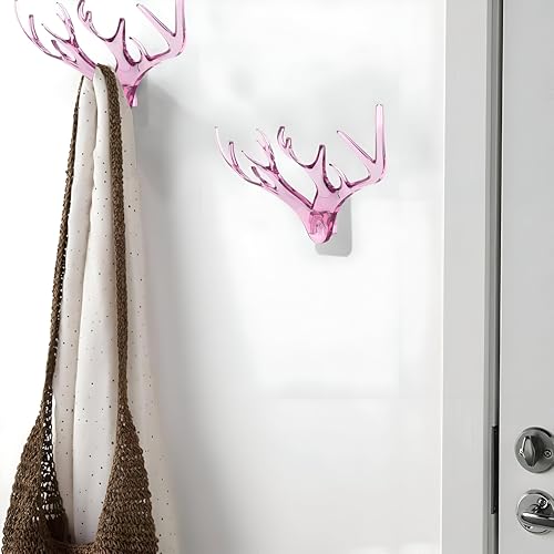 Generic - خطاف حائط مزدوج الطرف على شكل قرون الغزلان لتعليق المعاطف، حامل معاطف لاصق شفاف للحيوانات الأليفة، حامل مناشف ورقية أكريليك قوي، مثالي لتعزيز ديكور المنزل وتنظيم منطقتك (2 خطاف)