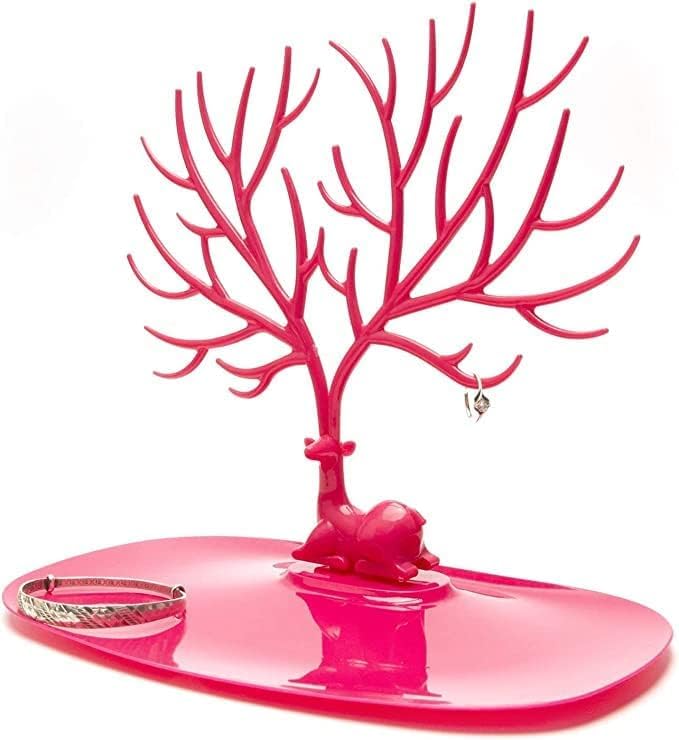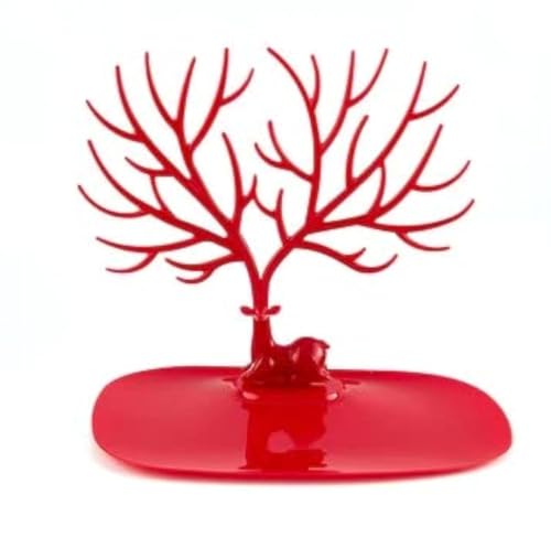 Spaceshoop - حامل عرض المجوهرات على شكل رأس غزال، منظم مجوهرات (احمر)
