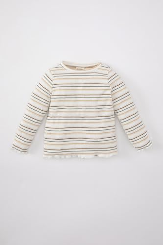 DeFacto - تيشيرت بأكمام طويلة وقصة عادية ورقبة واسعة للبنات البيبي من ديفاكتو، موديل B9698A5