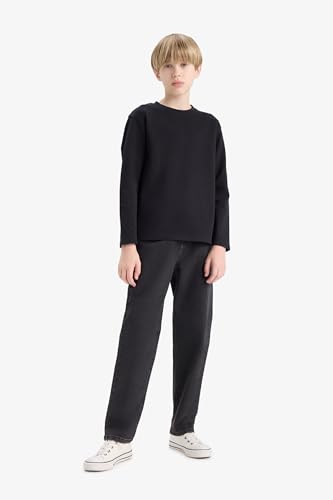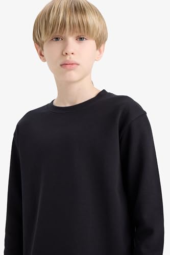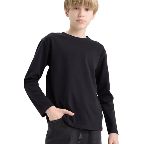 DeFacto - ديفاكتو تيشيرت محبوك باكمام طويلة ورقبة دائرية ضيقة وقصة عادية للاولاد E9661A8، كحلي لعمر 8/9 سنوات