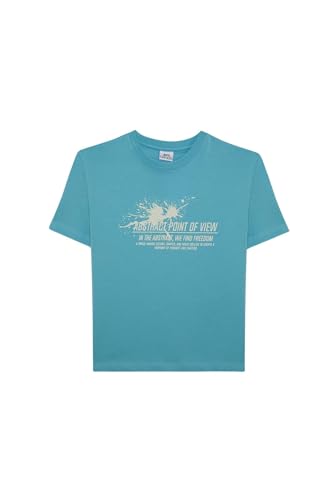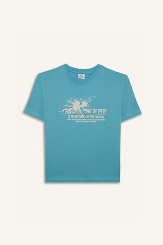DeFacto - DeFacto Boy Regular Fit Crew Neck Short Sleeve Casual Knitted Short Sleeve T-Shirt E0081A8,Aqua 5/6 Y