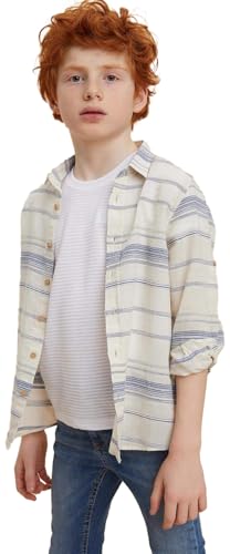 DeFacto - DeFacto Boy Regular Fit Polo Neck White Woven Top Long Sleeve Shirt, White 4/5 Y