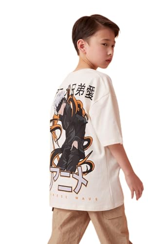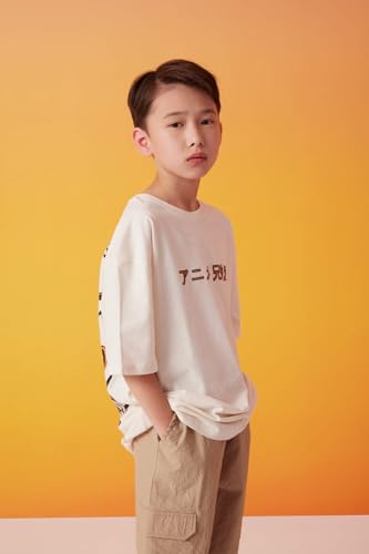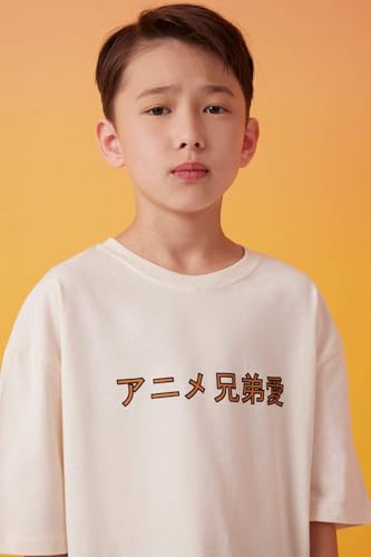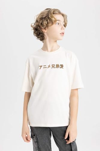 DeFacto - DeFacto Boys Knitted Oversize Fit Crew Neck Short Sleeve Short Sleeve T-Shirt C1343A8 Short Sleeve T-Shirt