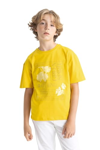 DeFacto - تيشرت منسوج نصف كم وبرقبة دائرية ضيقة وقصة كبيرة موديل C5000A8 للأولاد من ديفاكتو