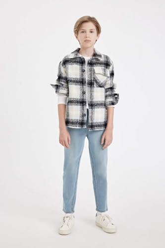 DeFacto - DeFacto Boys Oversize Fit Polo Neck Long Sleeve Woven Top Long Sleeve C9076A8 Modern