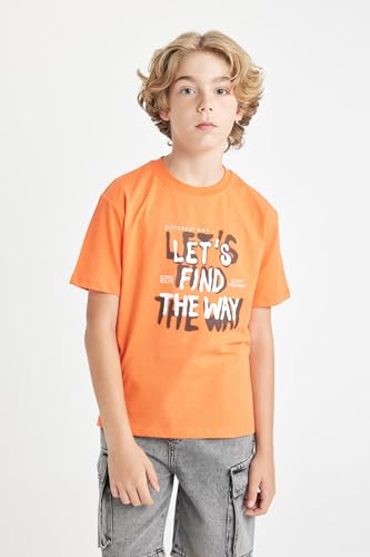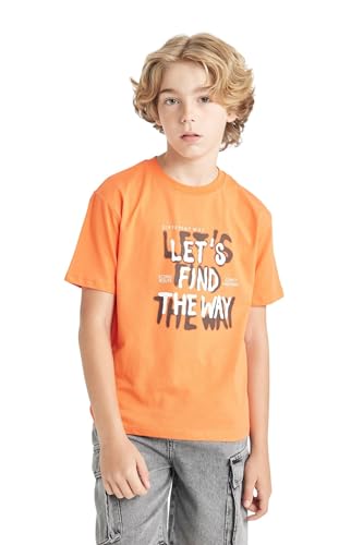 DeFacto - تيشرت منسوج بأكمام قصيرة ورقبة دائرية ضيقة وقصة عادية للأولاد من ديفاكتو، D0432A8